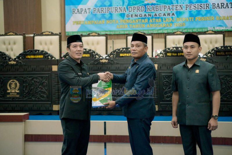 Pesisir Barat, Rilis Publik – Bupati Pesisir Barat, Dedi Irawan, menyampaikan Laporan Keterangan Pertanggungjawaban (LKPJ) Tahun Anggaran 2025 dalam Rapat Paripurna Dewan Perwakilan Rakyat Daerah Kabupaten Pesisir Barat yang digelar di ruang rapat paripurna DPRD setempat, Selasa (07/04/2026).