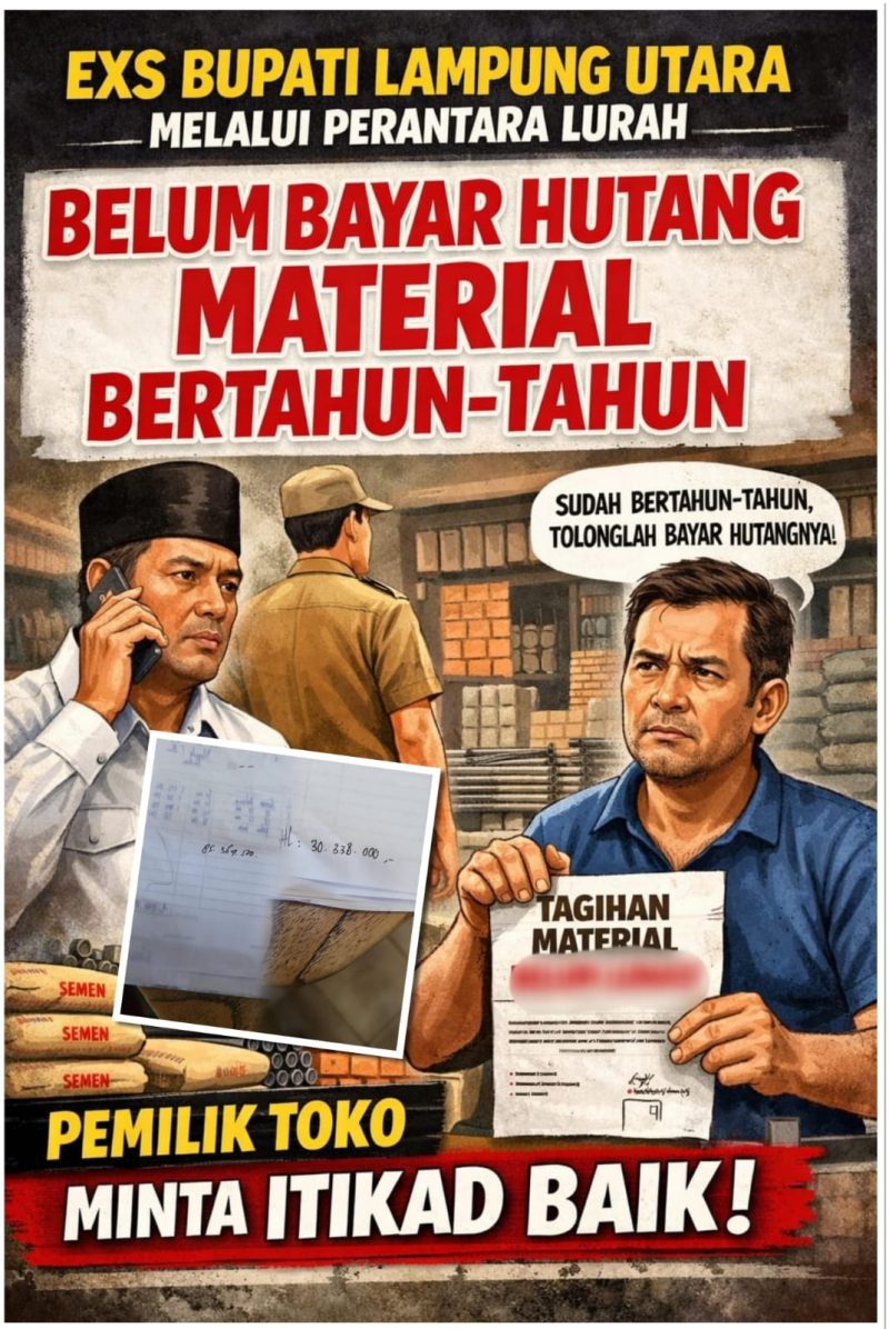 Lampung Utara, Rilis Publik– Mantan bupati kabupaten Lampung Utara AS diduga meninggal hutang material di sebuah toko banguan, menahun belum di bayar, pemilik toko minta itikad baik. Minggu (5 April 2026).Menurut Hafis Ahmad pemilik toko, bahan bangunan yang belum di bayar itu, di pesan melalui perantara M, lurah kelurahan Sribasuki kecamatan Kotabumi.