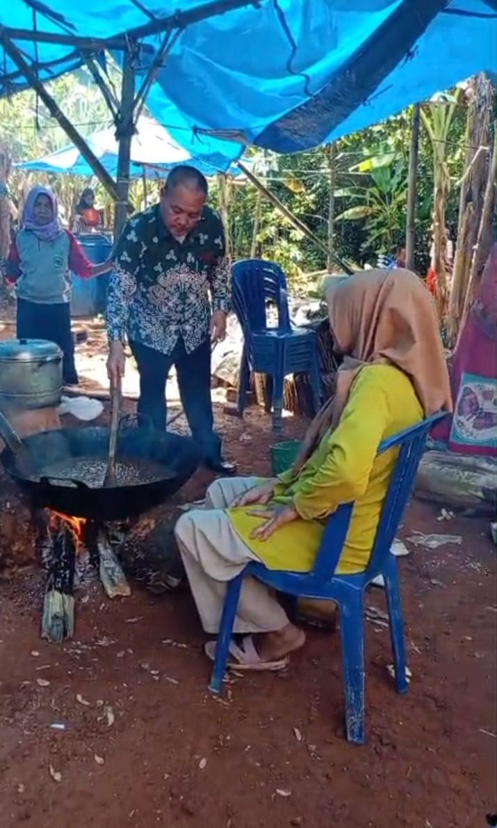 Usai pembinaan, Camat Hepi turut berbaur dengan warga pada kegiatan rewang di salah satu rumah warga Kampung Kali Papan Rejo. Ia bahkan ikut serta mengaduk jenang bersama para emak-emak milenial, menciptakan suasana akrab dan penuh tawa.