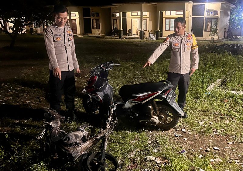 Dari tangan pelaku, petugas turut mengamankan barang bukti berupa satu unit sepeda motor milik korban, dua buah kunci letter T, serta sepeda motor milik pelaku yang telah hangus terbakar akibat dibakar massa.
