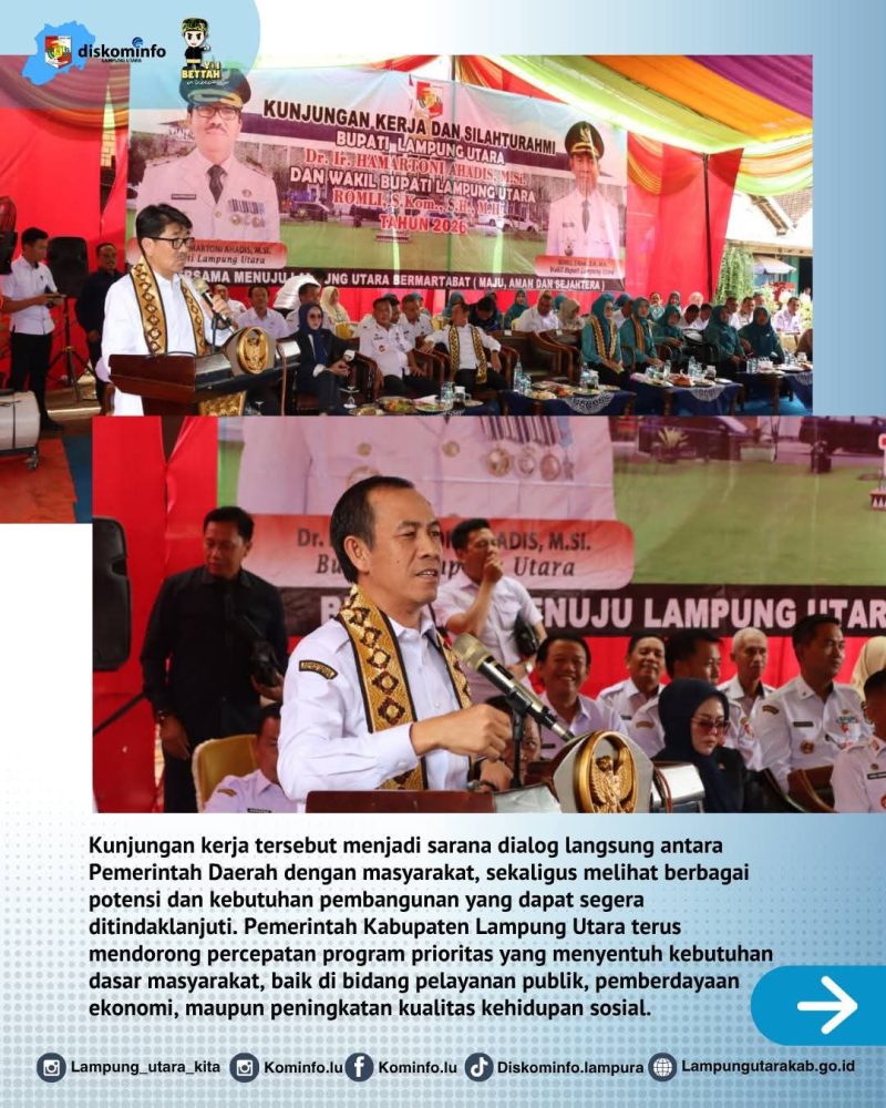 Kotabumi, Rilis Publik– Bupati Lampung Utara Dr. Ir. Hamartoni Ahadis, M.Si. melaksanakan kunjungan kerja ke Kecamatan Abung Barat yang dipusatkan di Desa Ogan Lima, Rabu 7 Maret 2026.