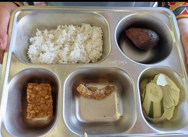 Peristiwa ini terjadi di Kecamatan Sekincau, Kamis (15/1/2026). Dari foto yang diterima tim media, terlihat menu hanya terdiri dari nasi, tempe, buah salak, timun dan kol, serta potongan daging fillet yang sangat kecil, sehingga memicu kekhawatiran orang tua terhadap kecukupan gizi anak.