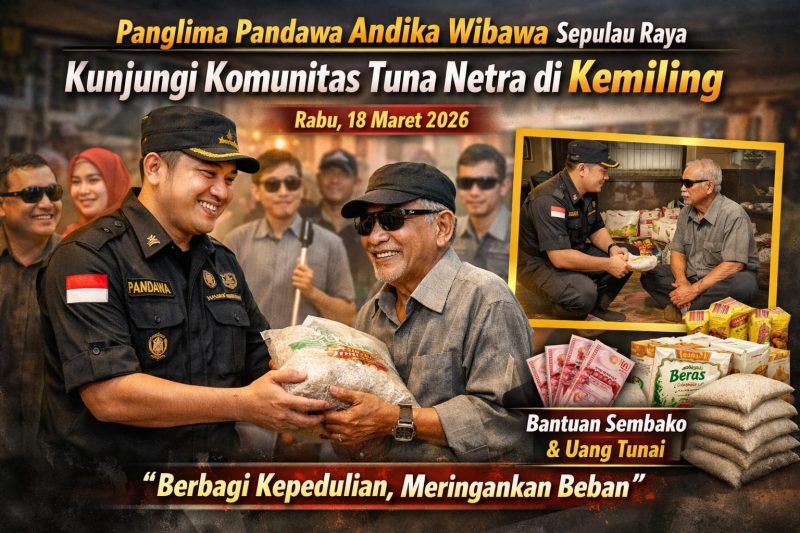 Bandar Lampung, Rilis Publik– Sosok Andika Wibawa yang dikenal sebagai Panglima Pandawa kembali menunjukkan kepeduliannya terhadap masyarakat.