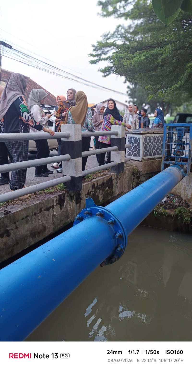 Bandar Lampung, Rilis Publik– Wali Kota Bandar Lampung, Eva Dwiana, meninjau langsung kondisi saluran irigasi yang mengalir ke wilayah Kecamatan Tanjung Senang, Minggu (8/3/2026).