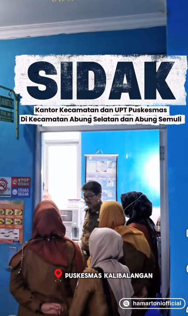 Lampung Utara, – Dalam upaya memastikan pelayanan publik berjalan optimal, Pemerintah Kabupaten Lampung Utara melakukan kunjungan mendadak (sidak) ke sejumlah fasilitas pelayanan masyarakat. Kunjungan ini dilakukan ke Kantor Kecamatan Abung Selatan, UPTD Puskesmas Kalibalangan, UPTD Puskesmas Abung Semuli, serta Kantor Kecamatan Abung Semuli.