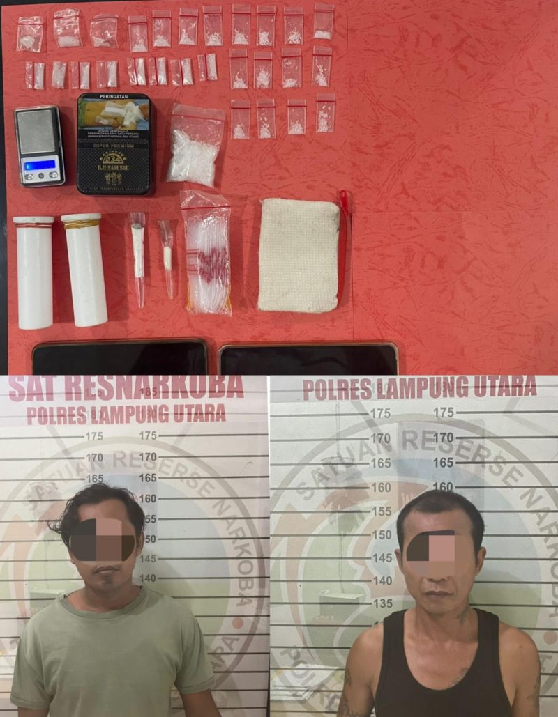 “Barang bukti yang ditemukan mengindikasikan adanya aktivitas peredaran narkotika. Saat ini kedua pelaku beserta barang bukti telah diamankan di Satresnarkoba Polres Lampung Utara untuk proses penyidikan lebih lanjut,” tambahnya.