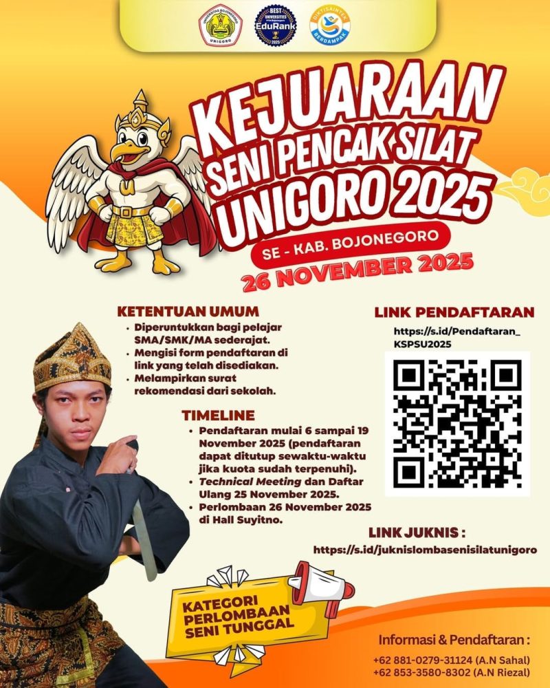 Maka, kepada seluruh pelajar yang masih menyimpan bara semangat di dadanya — datanglah, kenakan sabuk kehormatanmu, dan berdirilah di gelanggang UNIGORO, buktikan bahwa Bojonegoro masih punya ksatria muda yang tidak sekadar tangguh, tapi juga berbudaya.