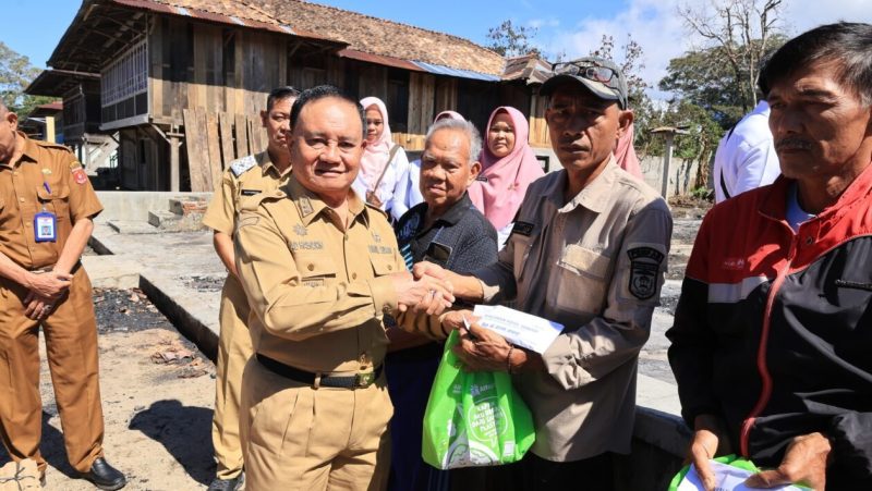 Lampung Barat, Rilis Publik – Wakil Bupati Lampung Barat, Mad Hasnurin, turun langsung menyambangi korban kebakaran rumah di Pekon Kenali, Kecamatan Belalau, Senin (13/4/2026). Kunjungan tersebut sekaligus menjadi bentuk kepedulian pemerintah daerah terhadap warga terdampak musibah.